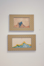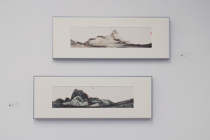 Unlike traditional landscape paintings, these works present a distinctly modern atmosphere in both their composition and the depiction of mountains and rocks. Notably, the extensive use of blank space and the abstract textures of color allow the viewer to enter an imaginative space full of wonder, with an atmosphere that evokes the poetic idea of “riding the cloud’s breath, controlling the flying dragon, and traveling beyond the four seas.”